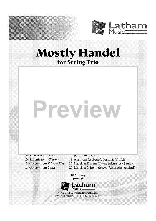 Digital Sheet Music for Mostly Handel - for String Trio - Score by , Various, Philip Clark scored for String Trio; id:460218