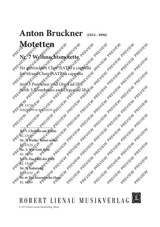 Digital Sheet Music for Motetten - Choral Score by Anton Bruckner scored for Mixed Choir (satb); id:505131