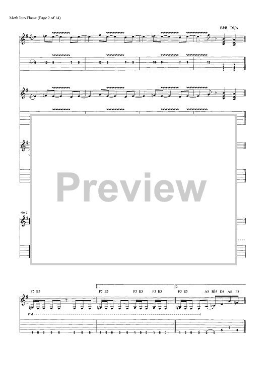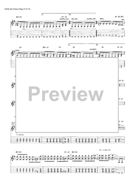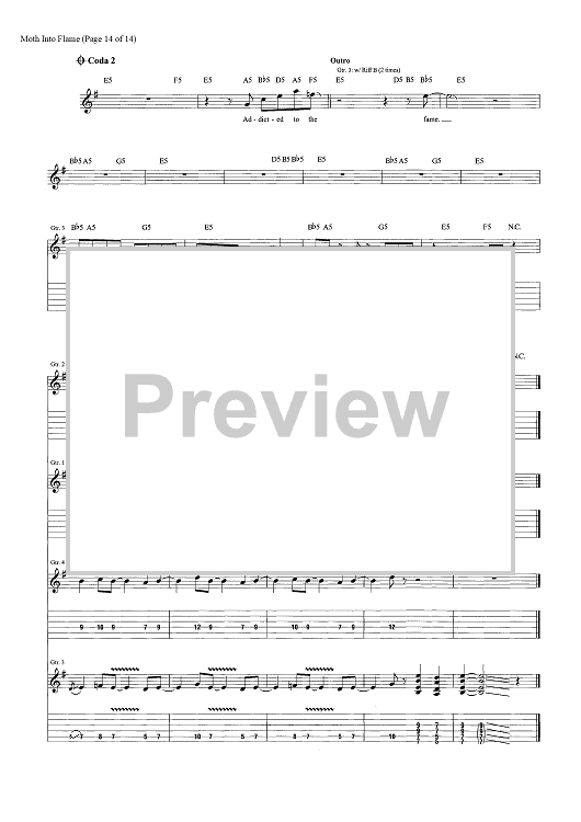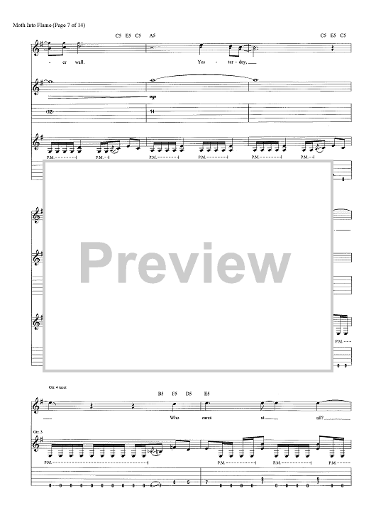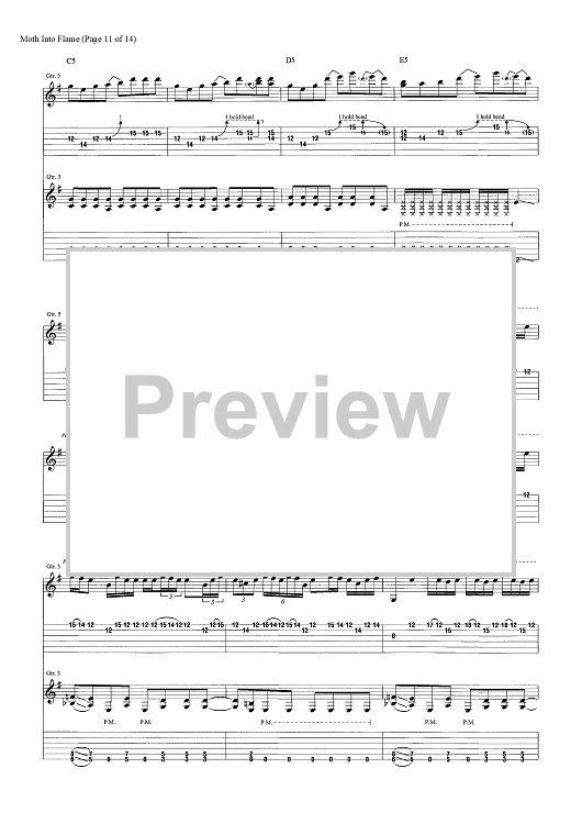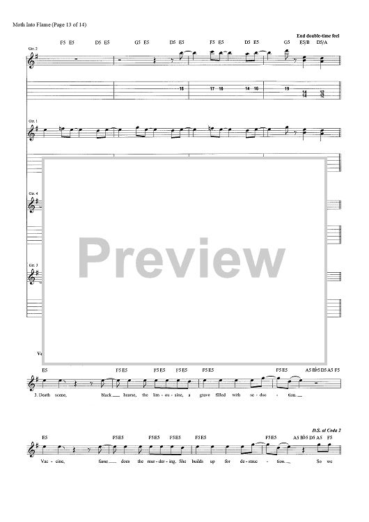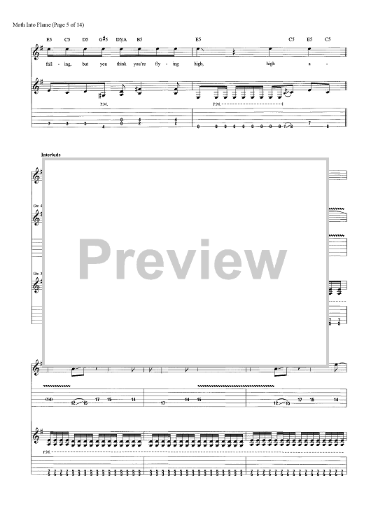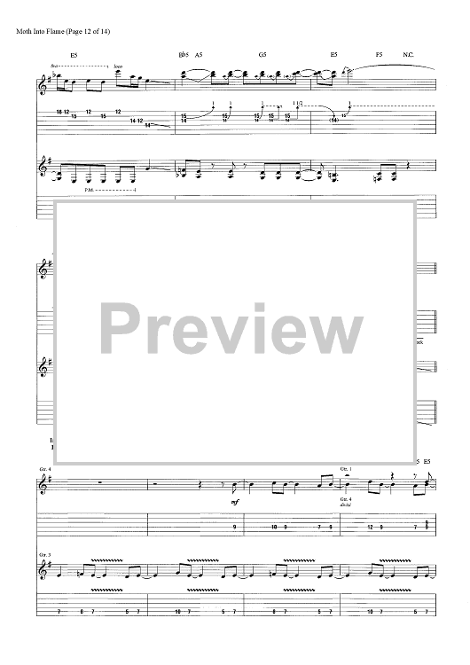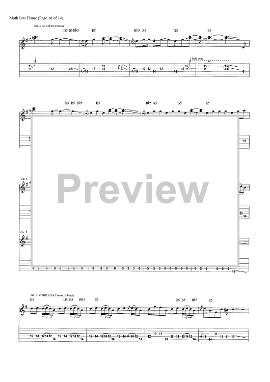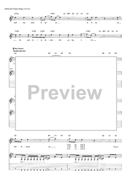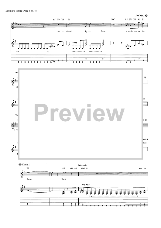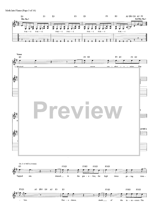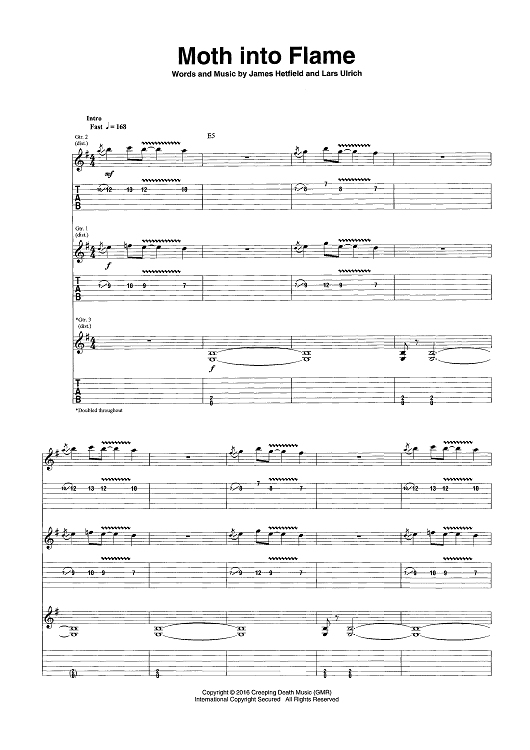 Digital Sheet Music for Moth into Flame by Metallica, James Hetfield, Lars Ulrich scored for Guitar Tab/Vocal/Chords; id:464223