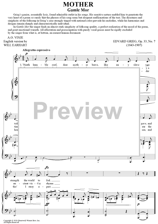 "Mother (Gamle Mor)" Sheet Music by Edvard Grieg