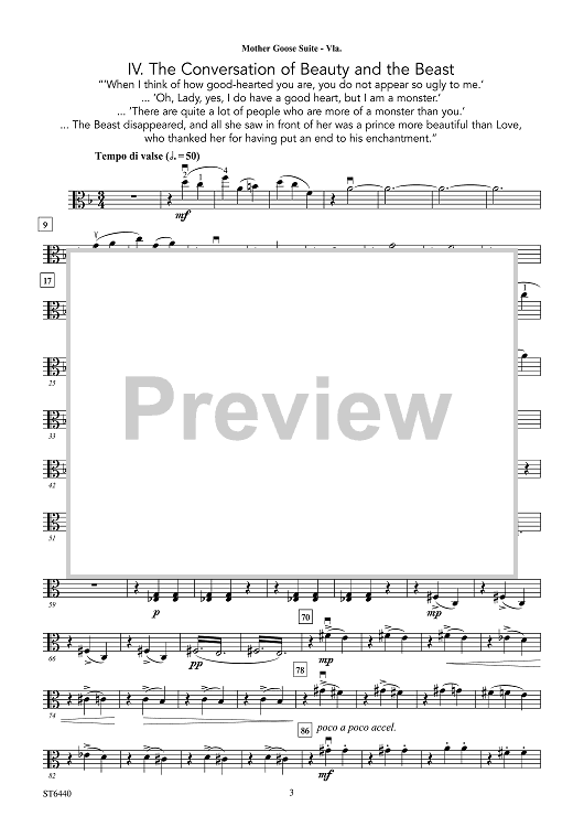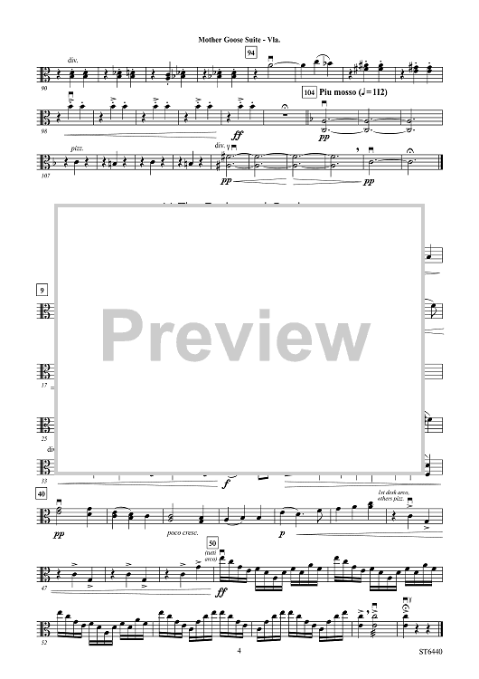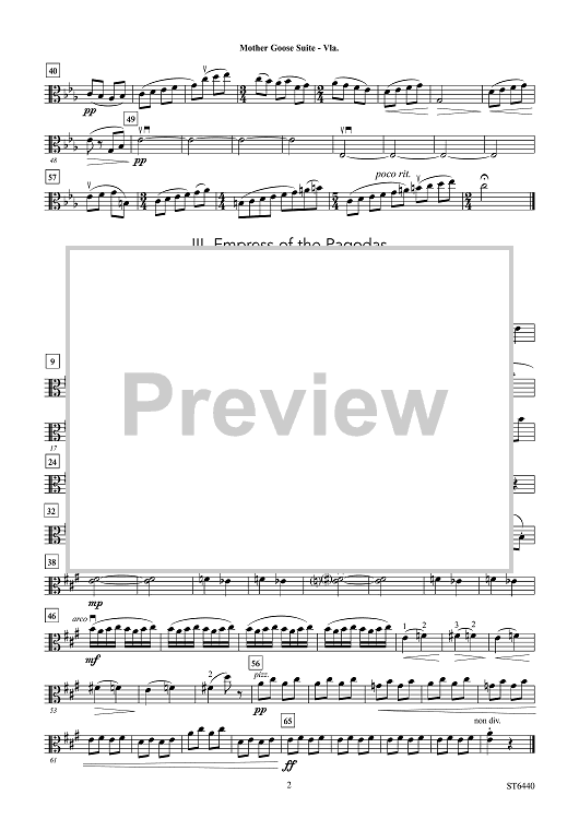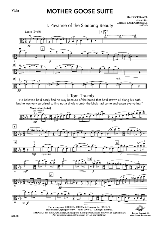 Digital Sheet Music for Mother Goose Suite - Viola by Carrie Lane Gruselle, Maurice Ravel scored for String Orchestra; id:506594