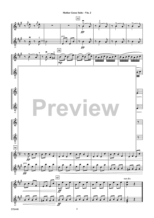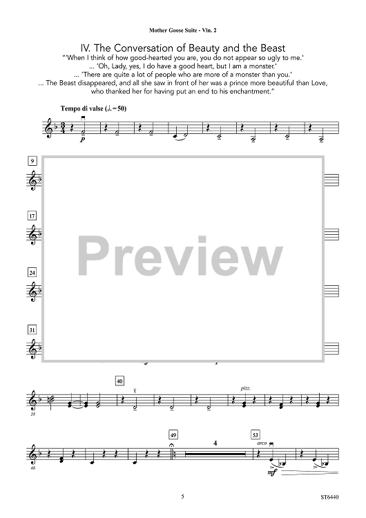 Digital Sheet Music for Mother Goose Suite - Violin 2 by Carrie Lane Gruselle, Maurice Ravel scored for String Orchestra; id:506593