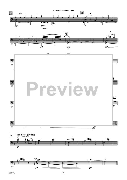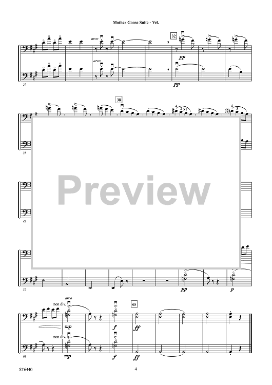 Digital Sheet Music for Mother Goose Suite - Violoncello by Carrie Lane Gruselle, Maurice Ravel scored for String Orchestra; id:506595