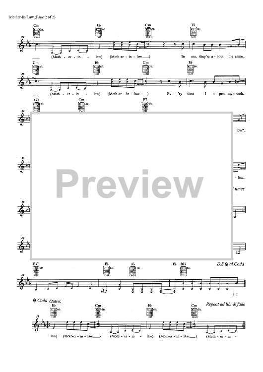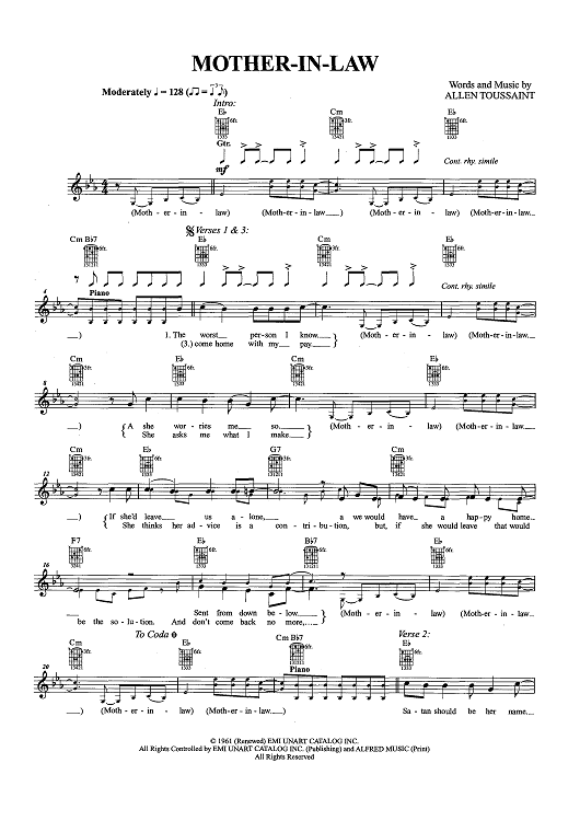 Digital Sheet Music for Mother-In-Law by Allen Toussaint, Ernie K-Doe scored for Guitar Tab/Vocal/Chords; id:457328