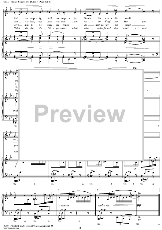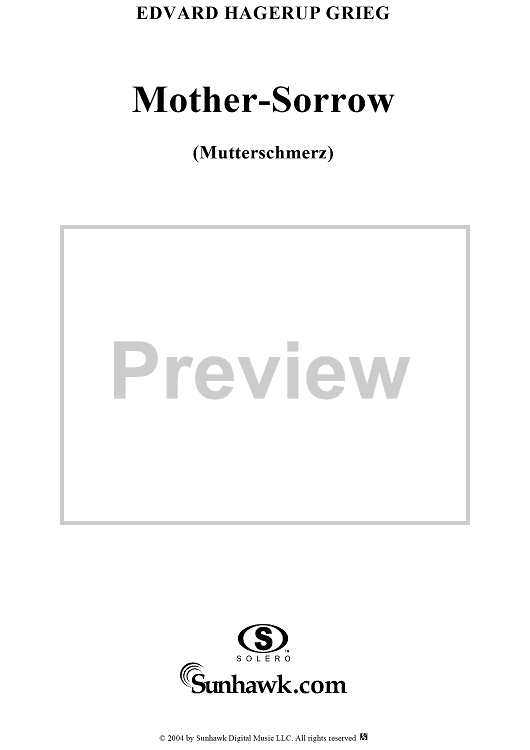 Digital Sheet Music for Mother Sorrow, Op. 15, No. 4 by Edvard Grieg, C Richardt scored for Voice/Piano; id:303584