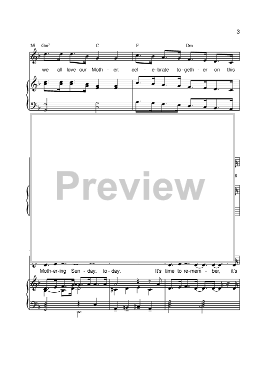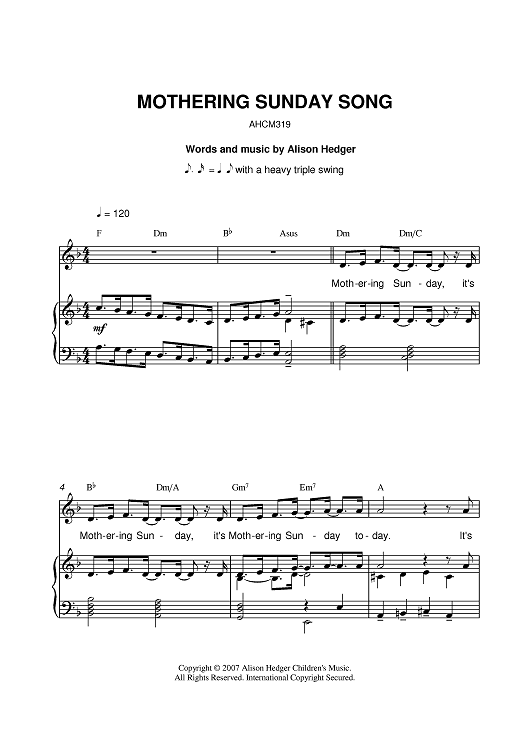 Digital Sheet Music for Mothering Sunday Song by Alison Hedger scored for Piano/Vocal/Chords; id:394987