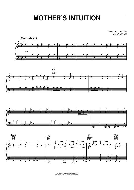 Digital Sheet Music for Mother's Intuition by Carly Simon scored for Piano/Vocal/Chords; id:371267