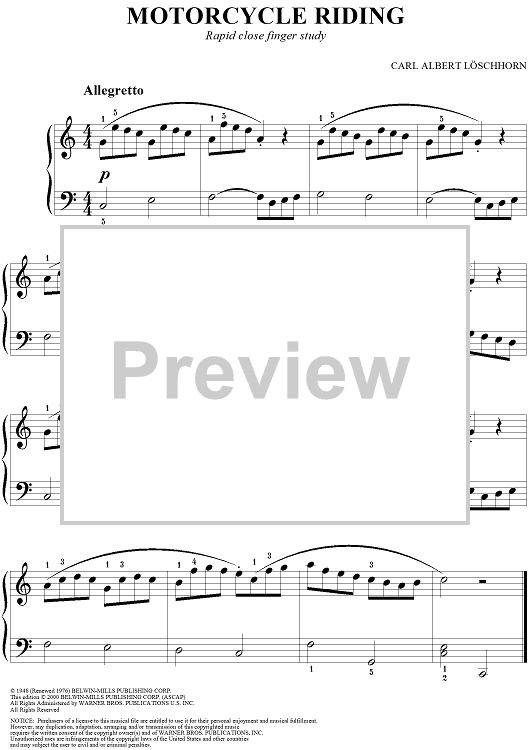 Digital Sheet Music for Motorcycle Riding by A. Loeschhorn scored for Easy Piano; id:295898