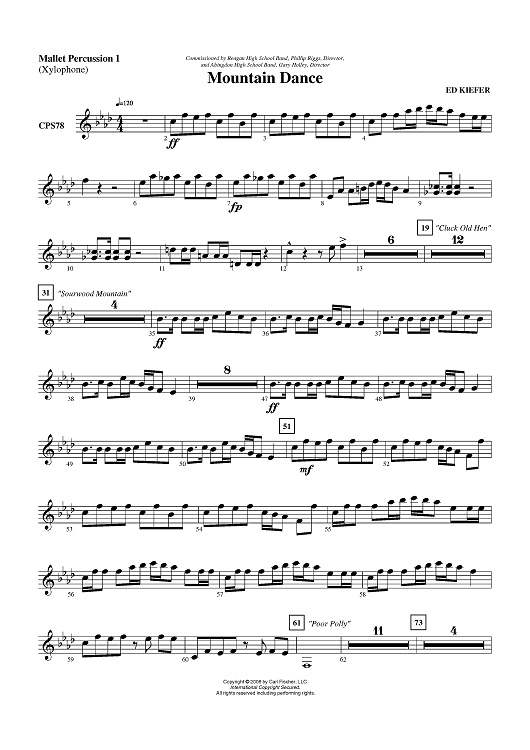 Digital Sheet Music for Mountain Dance - Mallet Percussion 1 by Ed Kiefer scored for Concert Band; id:408770