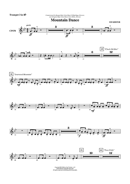 Digital Sheet Music for Mountain Dance - Trumpet 3 in B-flat by Ed Kiefer scored for Concert Band; id:408761