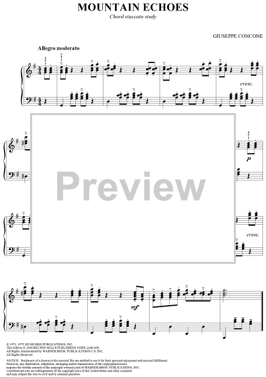 Digital Sheet Music for Mountain Echoes by Giuseppe Concone scored for Piano Solo; id:295850