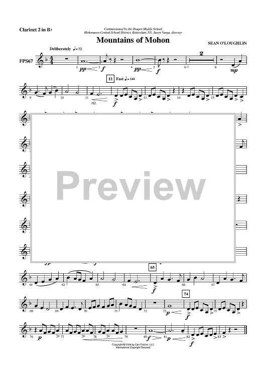 Digital Sheet Music for Mountains of Mohon - Clarinet 2 in B-flat by Sean O'Loughlin scored for Concert Band; id:409137