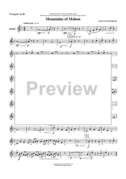 Digital Sheet Music for Mountains of Mohon - Trumpet 1 in B-flat by Sean O'Loughlin scored for Concert Band; id:409142