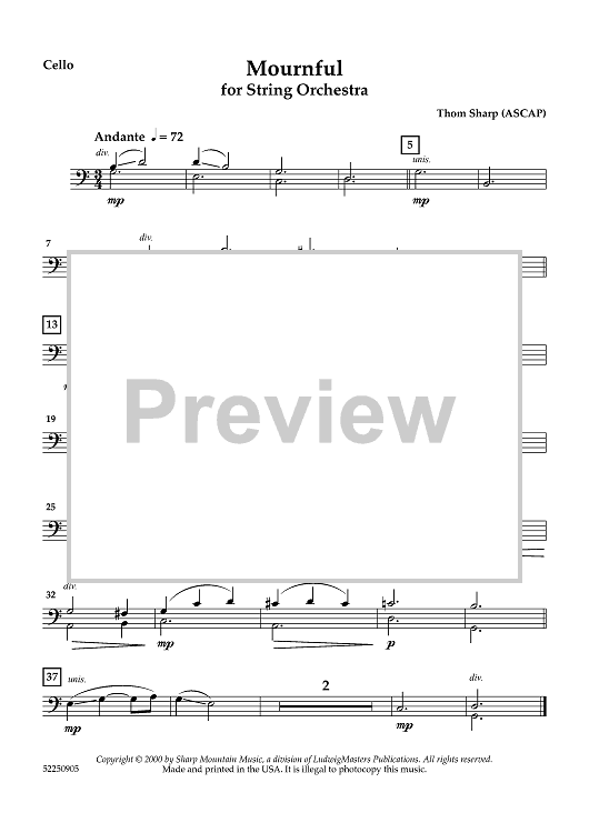 Digital Sheet Music for Mournful for String Orchestra - Violoncello by , Thom Sharp scored for String Orchestra; id:460512