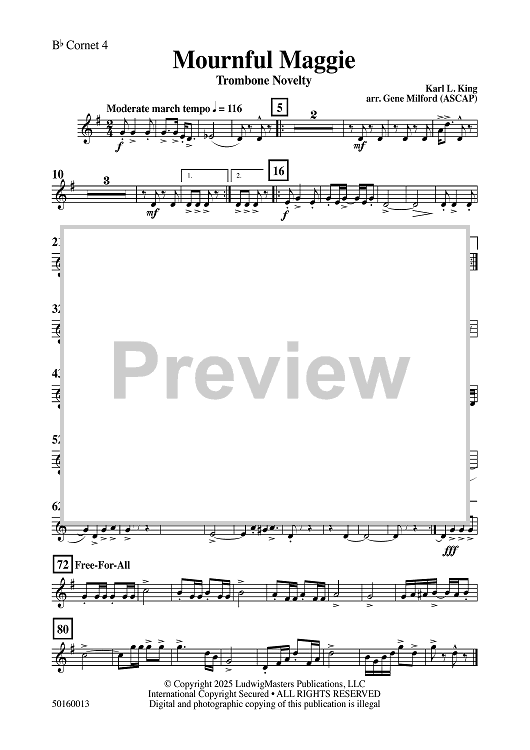 Digital Sheet Music for Mournful Maggie (Trombone Novelty) - Bb Cornet 4 by Gene Milford, Karl King scored for Concert Band; id:508938