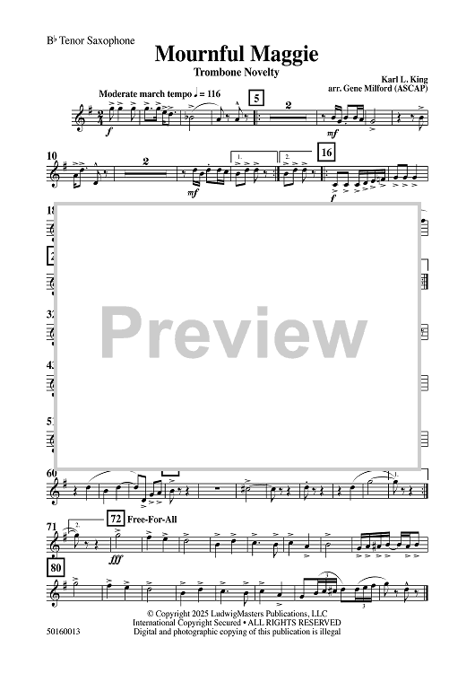 Digital Sheet Music for Mournful Maggie (Trombone Novelty) - Bb Tenor Saxophone by Gene Milford, Karl King scored for Concert Band; id:508933