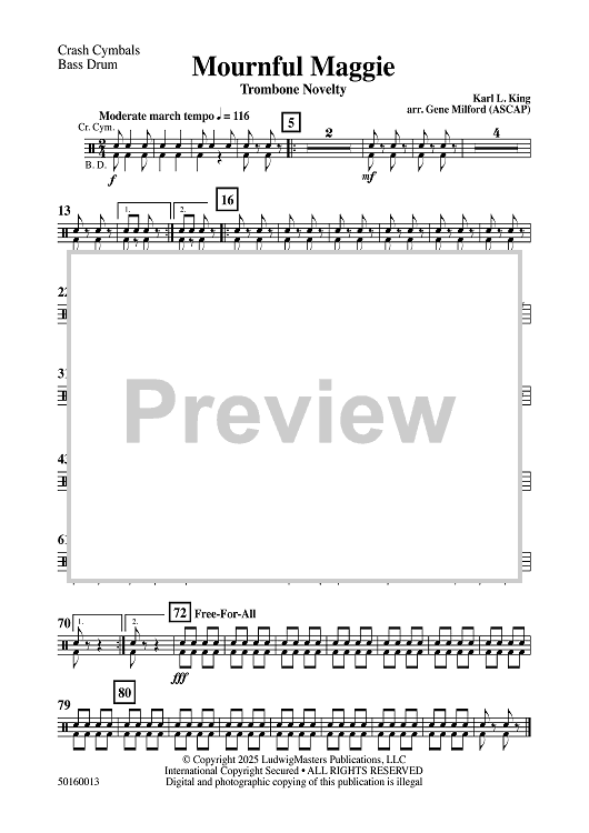 "Mournful Maggie (Trombone Novelty) - Crash Cymbals / Bass Drum" Sheet Music by Karl King