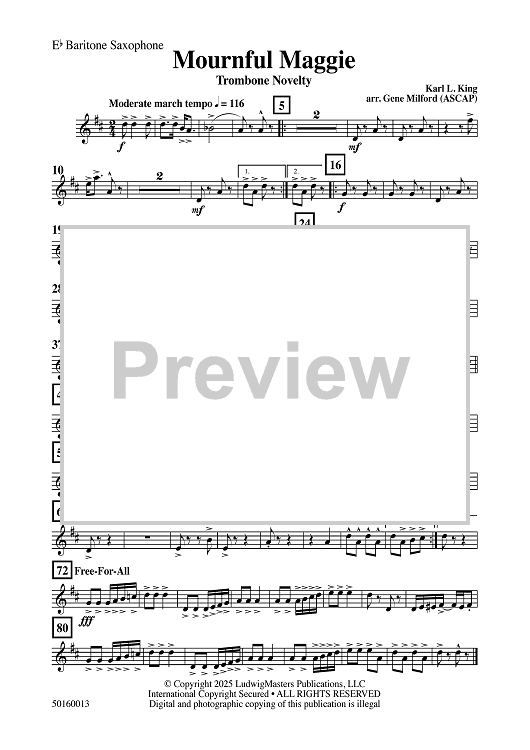 Digital Sheet Music for Mournful Maggie (Trombone Novelty) - Eb Baritone Saxophone by Gene Milford, Karl King scored for Concert Band; id:508934