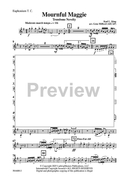 Digital Sheet Music for Mournful Maggie (Trombone Novelty) - Euphonium TC by Gene Milford, Karl King scored for Concert Band; id:508946