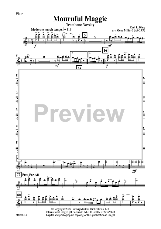 Digital Sheet Music for Mournful Maggie (Trombone Novelty) - Flute by Gene Milford, Karl King scored for Concert Band; id:508924