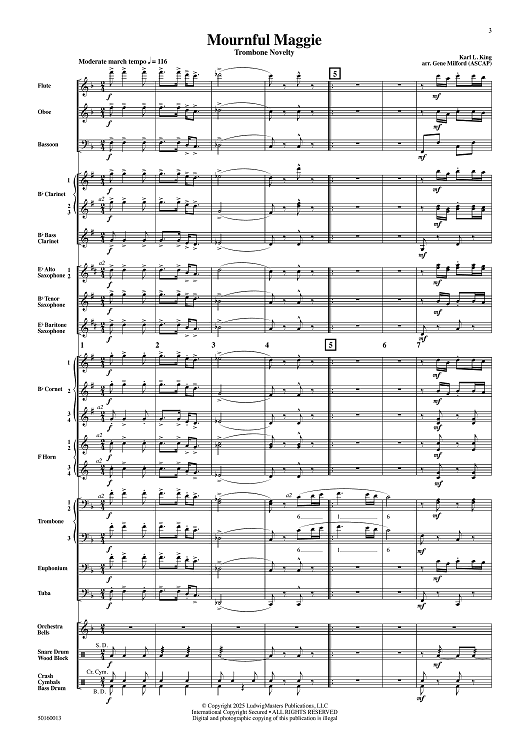 Digital Sheet Music for Mournful Maggie (Trombone Novelty) - Full Score by Gene Milford, Karl King scored for Concert Band; id:508923