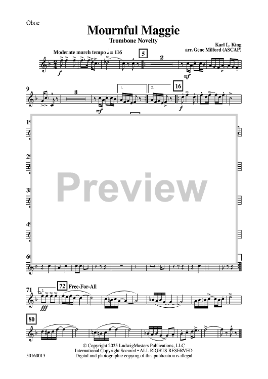 Digital Sheet Music for Mournful Maggie (Trombone Novelty) - Oboe by Gene Milford, Karl King scored for Concert Band; id:508925