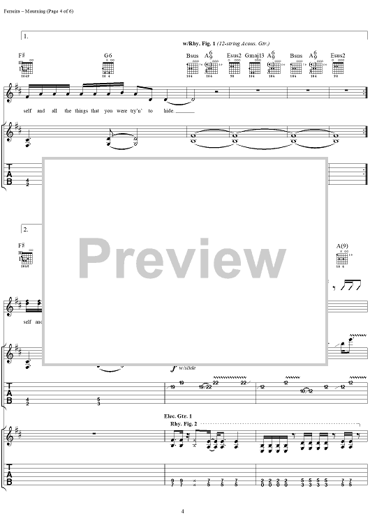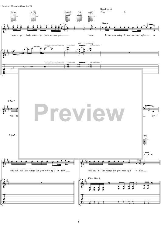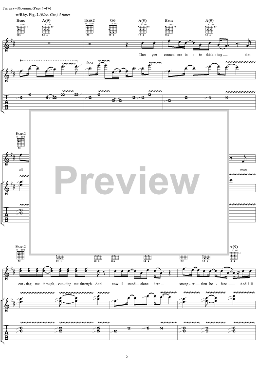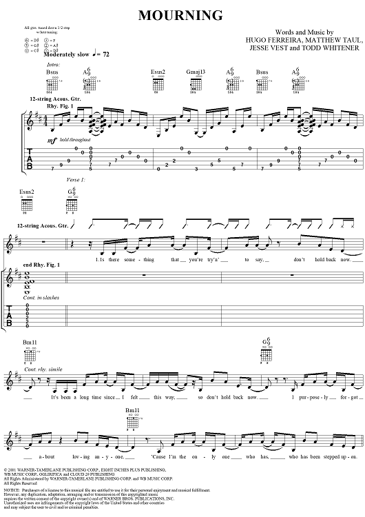 Digital Sheet Music for Mourning by Todd Whitener, Tantric, Hugo Ferreira, Matthew Taul, Jesse Vest scored for Guitar Tab/Vocal; id:286620
