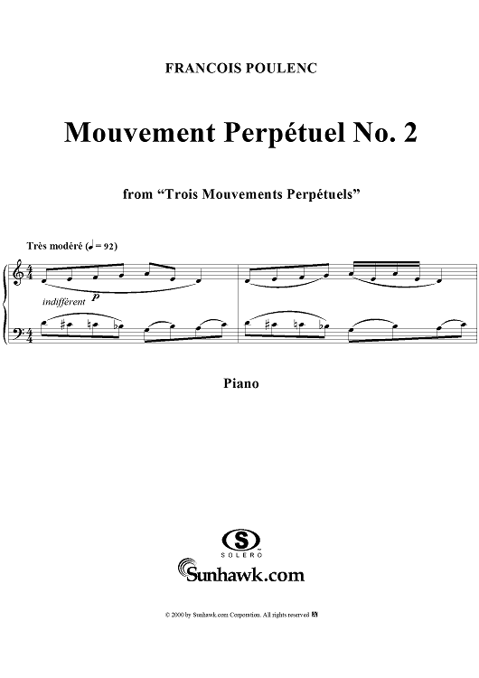 "Mouvement Perpétuel no. 2 - From "Trois Mouvements Perpétuels"" Sheet Music by Francis Poulenc