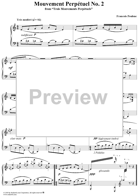 Digital Sheet Music for Mouvement Perpétuel no. 2 - From "Trois Mouvements Perpétuels" by Francis Poulenc scored for Piano Solo; id:269523