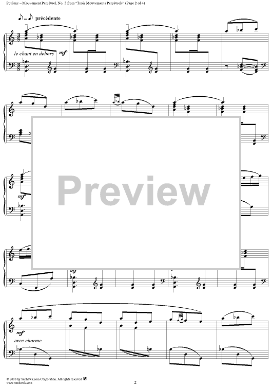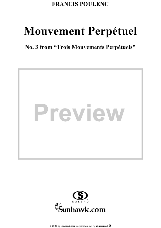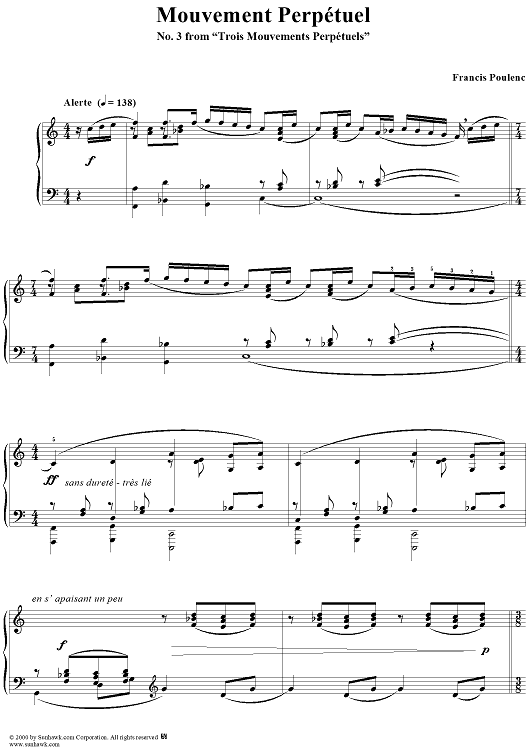 "Mouvement Perpétuel no. 3 - From "Trois Mouvements Perpétuels"" Sheet Music by Francis Poulenc