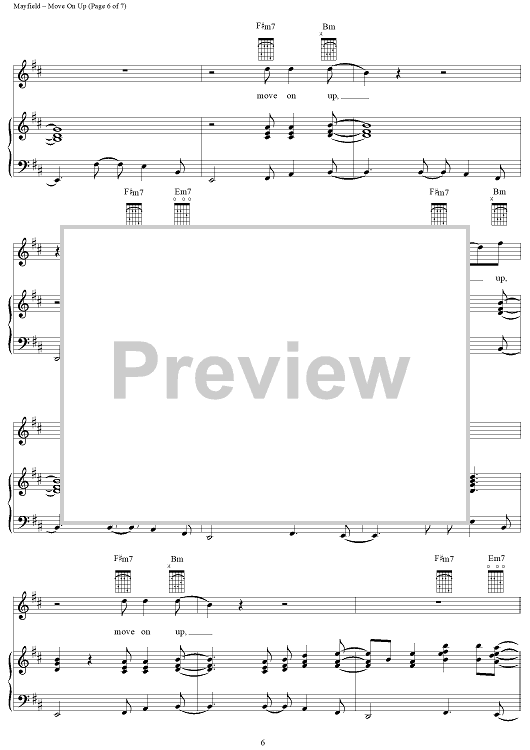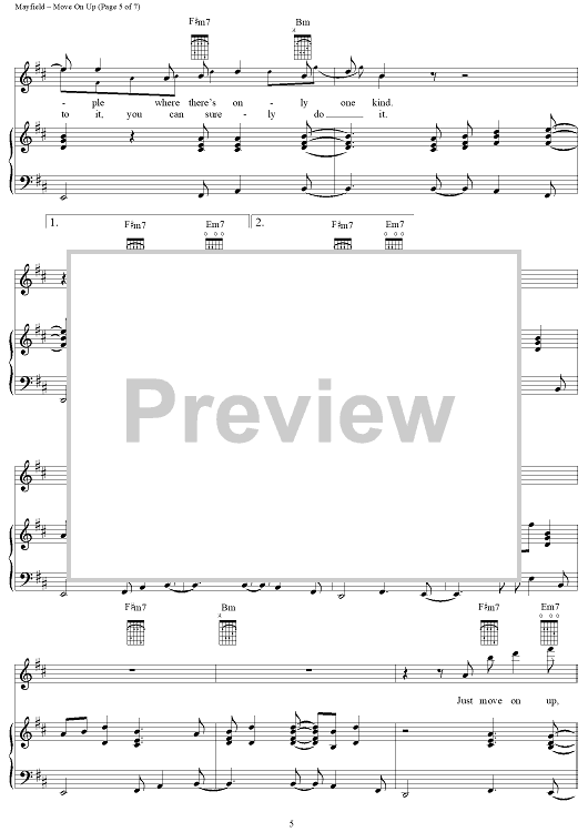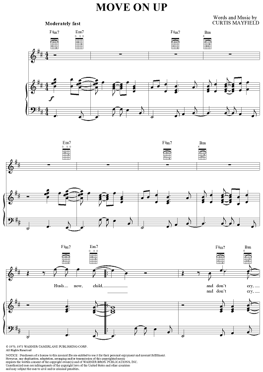 Digital Sheet Music for Move On Up by Curtis Mayfield scored for Piano/Vocal/Chords; id:120706
