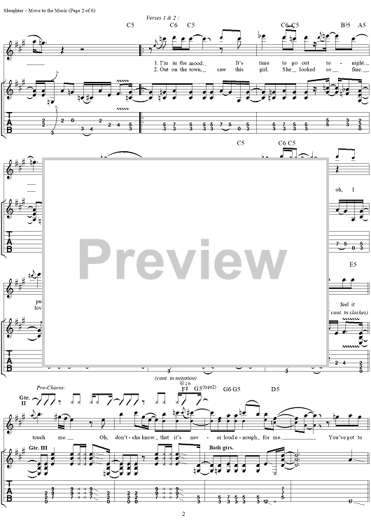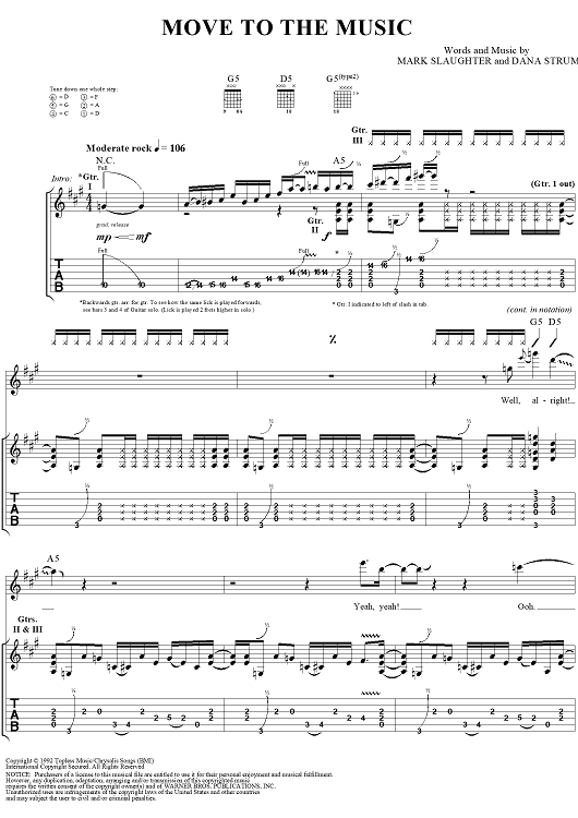 Digital Sheet Music for Move to the Music by Slaughter, Mark Slaughter, Dan Truman scored for Guitar Tab/Vocal; id:258056