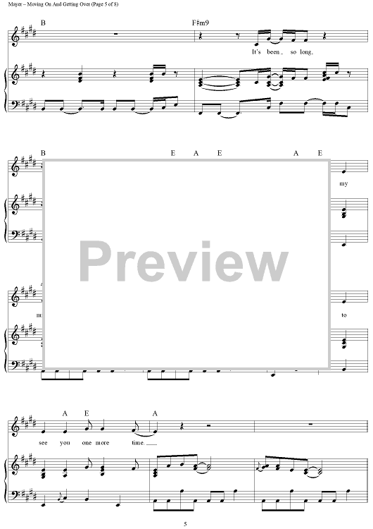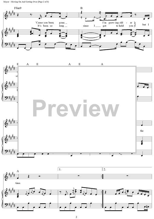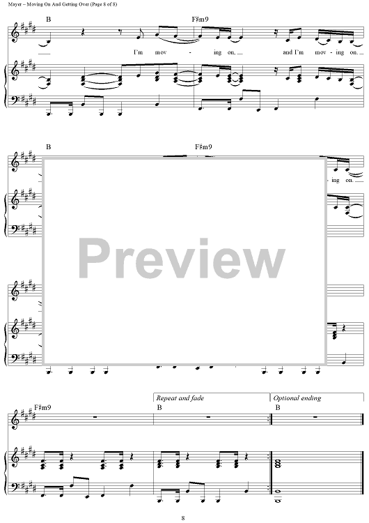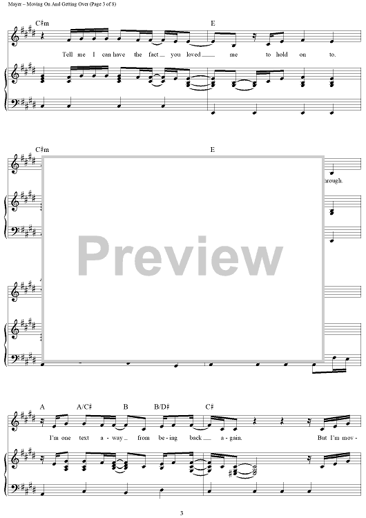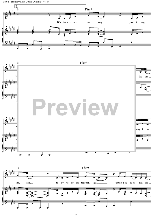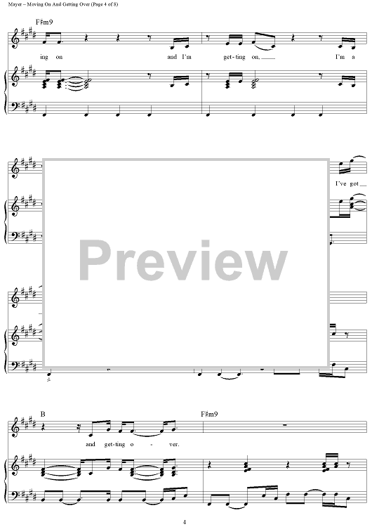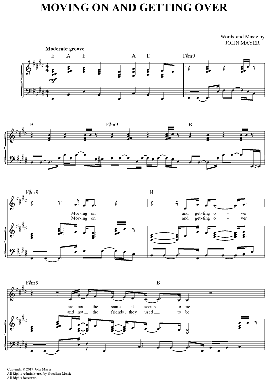 Digital Sheet Music for Moving On And Getting Over by John Mayer scored for Piano/Vocal/Chords; id:463829