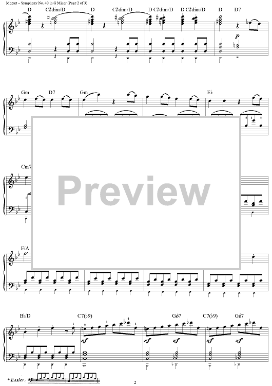 Digital Sheet Music for Mozart – Symphony No. 40 in G Minor - First Movement Theme by Wolfgang Amadeus Mozart scored for Easy Piano/Chords; id:434740