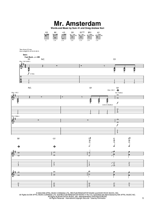 Digital Sheet Music for Mr. Amsterdam by Greig Andrew Nori, Sum 41 scored for Guitar Tab; id:371069