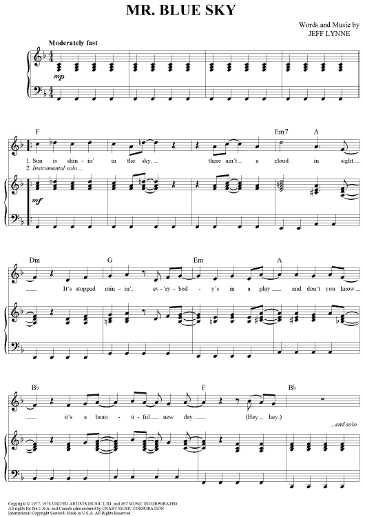 "Mr. Blue Sky" Sheet Music by Electric Light Orchestra