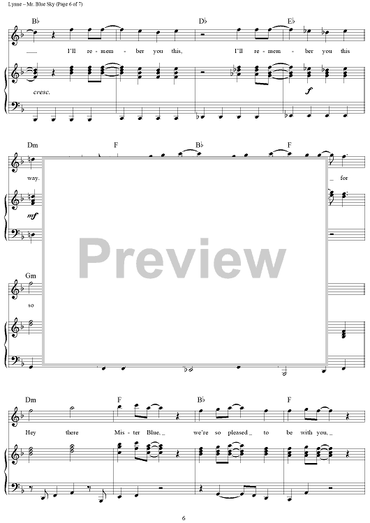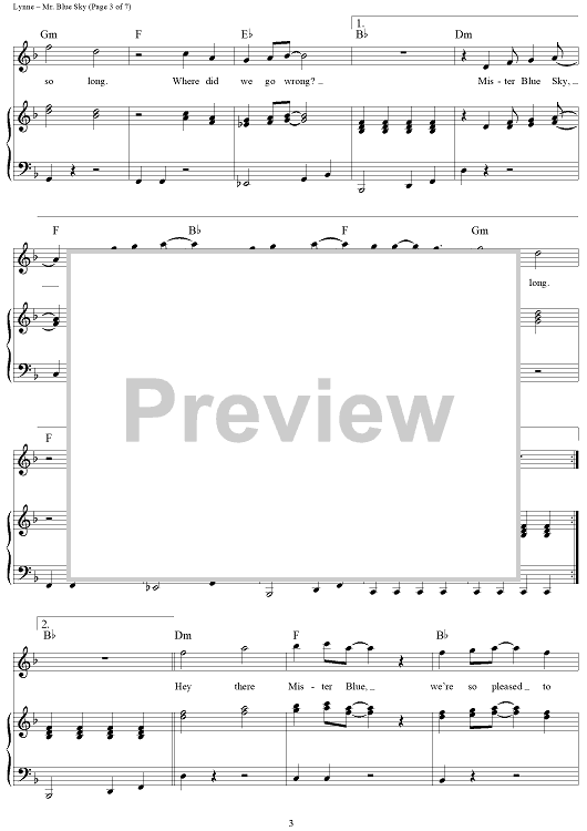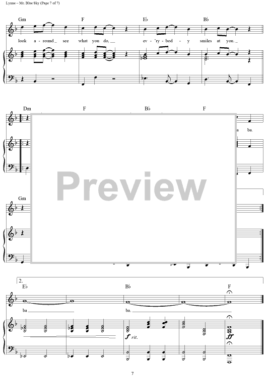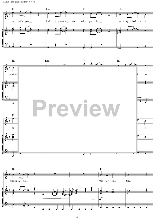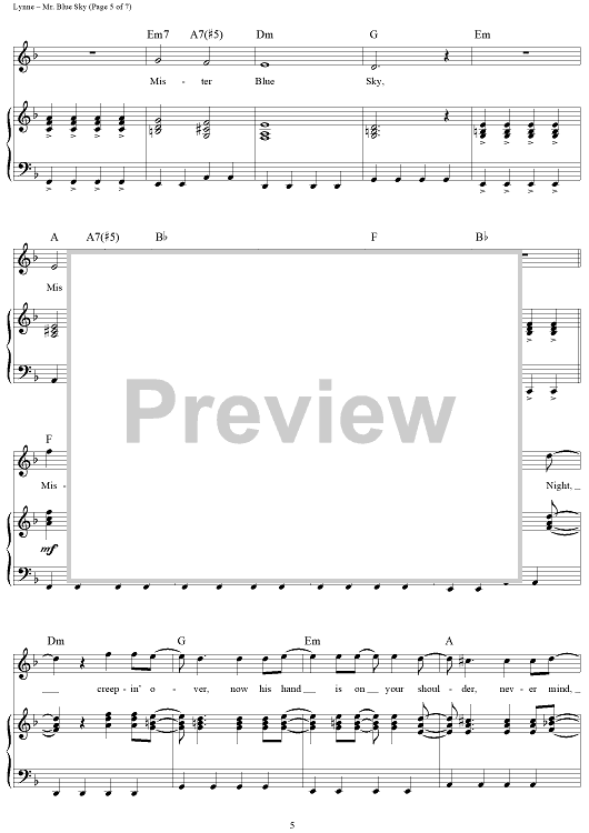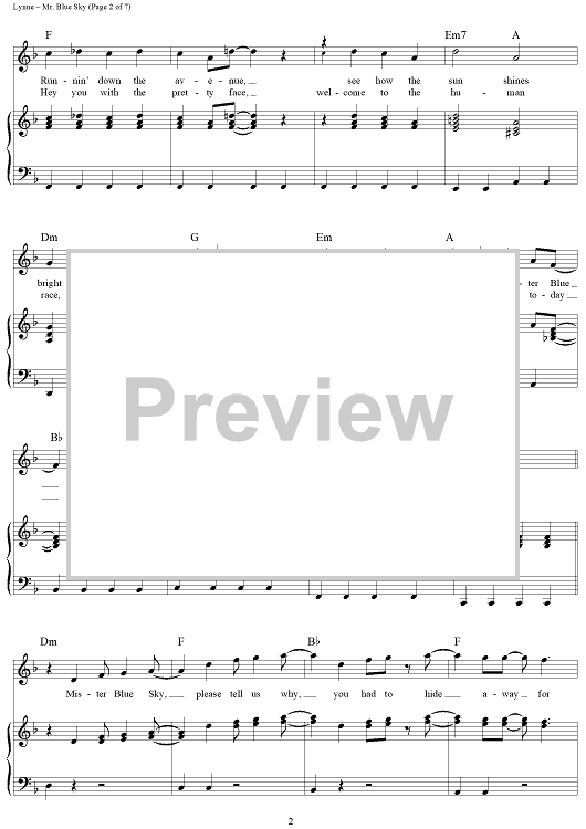 Digital Sheet Music for Mr. Blue Sky by Jeff Lynne, Electric Light Orchestra scored for Piano/Vocal/Chords; id:363930