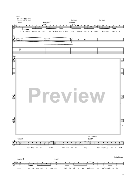 Digital Sheet Music for Mr. Brightside by Brandon Flowers, Dave Keuning, The Killers, Mark Stoermer, Ronnie Vannucci Jr. scored for Guitar Tab; id:380364