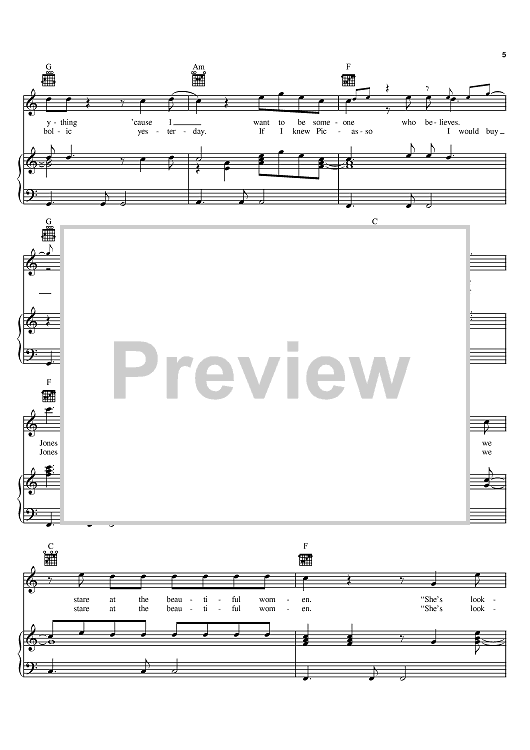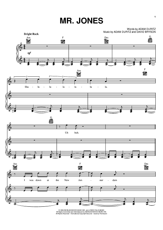 Digital Sheet Music for Mr. Jones by Counting Crows, Adam Duritz, David Bryson scored for Piano/Vocal/Chords; id:368169