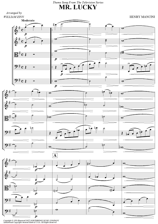 Digital Sheet Music for Mr. Lucky - Score by Henry Mancini, William Zinn scored for String Ensemble; id:458018