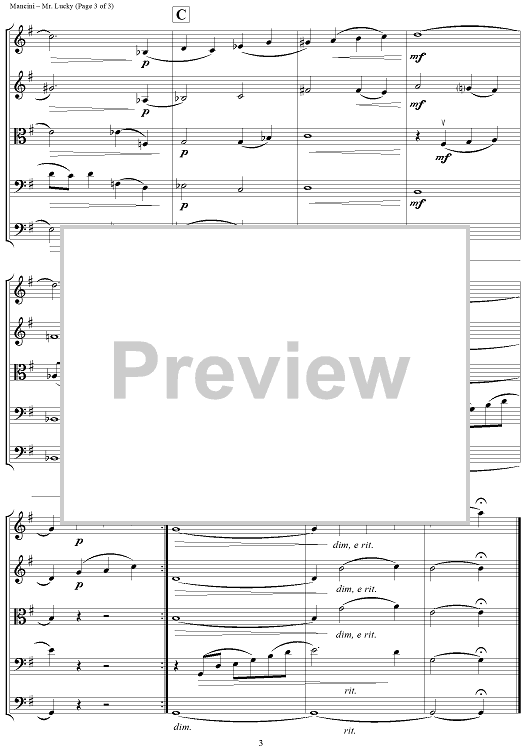 "Mr. Lucky - Score" Sheet Music by Henry Mancini