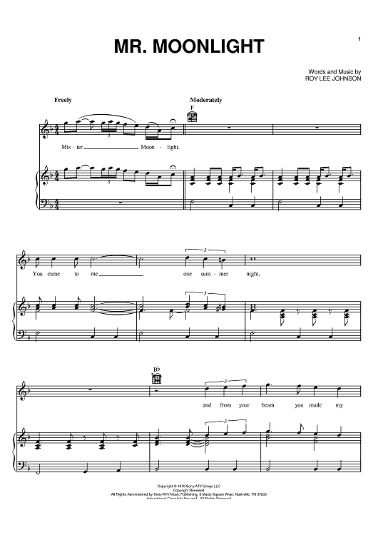 Digital Sheet Music for Mr. Moonlight by The Beatles, Roy Lee Johnson scored for Piano/Vocal/Chords; id:394800