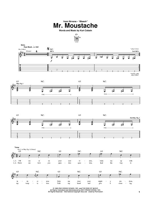 Digital Sheet Music for Mr. Moustache by Kurt Cobain, Nirvana scored for Guitar Tab; id:372458