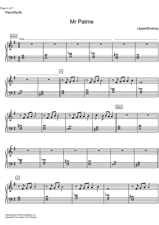 "Mr. Palme - Piano/Synth" Sheet Music by Hans Emborg