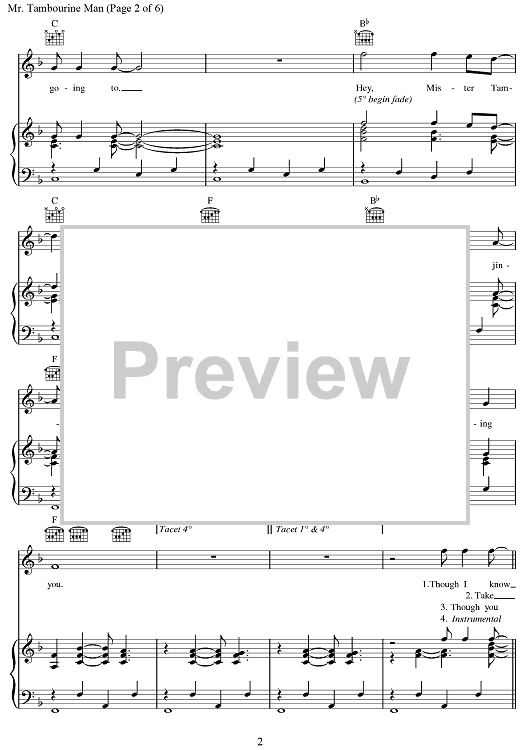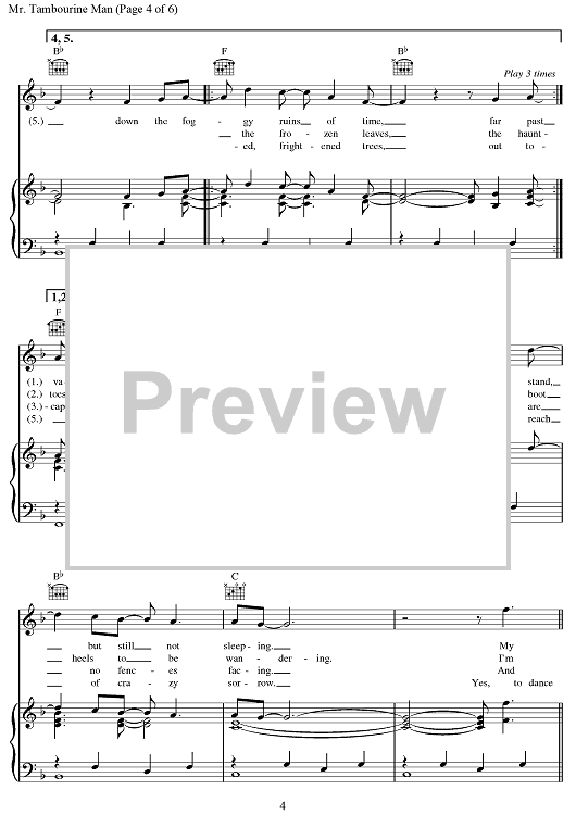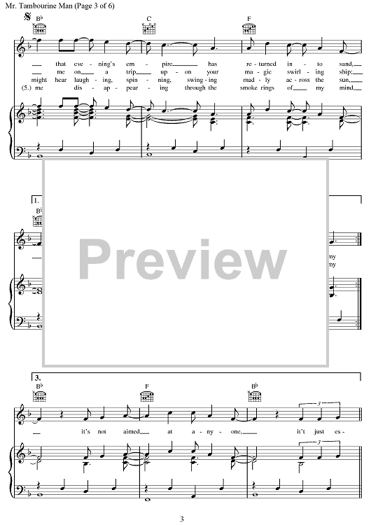 Digital Sheet Music for Mr. Tambourine Man by Bob Dylan scored for Piano/Vocal/Chords; id:387513