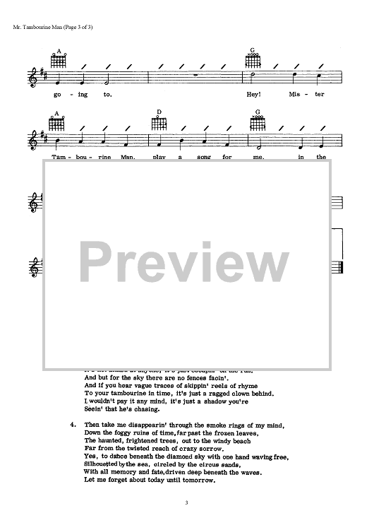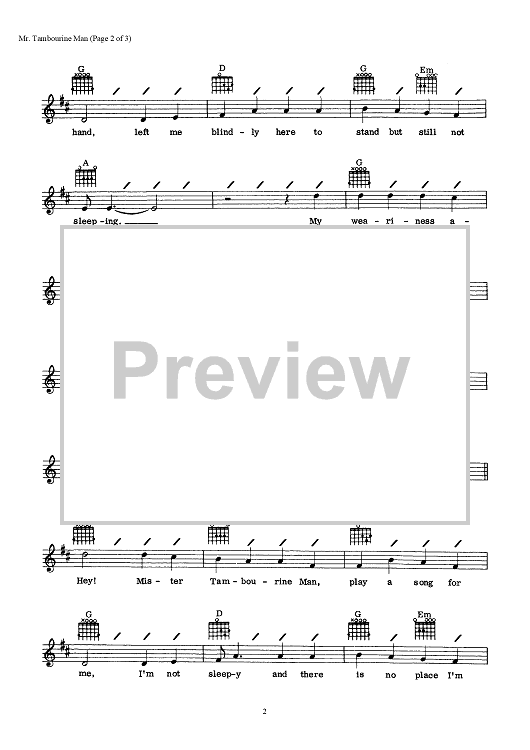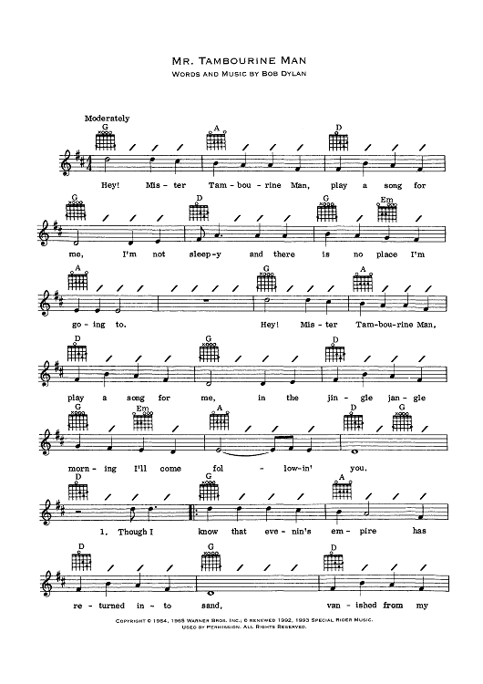 Digital Sheet Music for Mr. Tambourine Man by Bob Dylan scored for Lead Sheet; id:466306