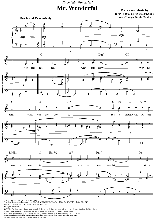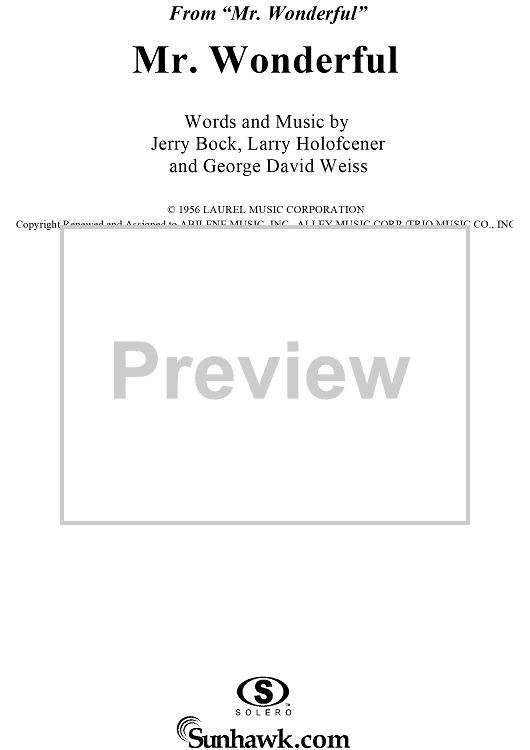 Digital Sheet Music for Mr. Wonderful by George Weiss, Jerry Bock, Larry Holofcener scored for Piano/Vocal/Chords; id:112795
