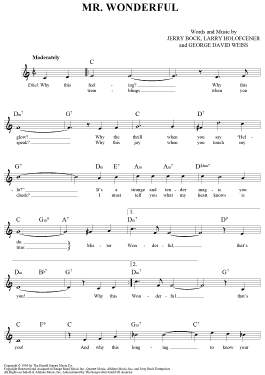 "Mr. Wonderful" Sheet Music by Jerry Bock