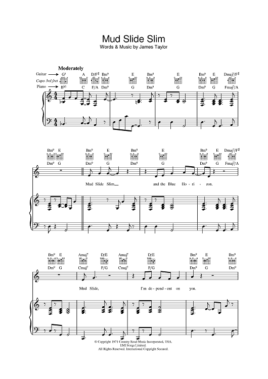 Digital Sheet Music for Mud Slide Slim by James Taylor scored for Piano/Vocal/Chords; id:393274