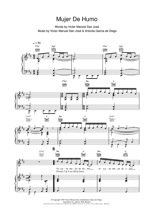Digital Sheet Music for Mujer De Humo by Antonia Garcia de Diego, VictorTierra Mia Manuel San Jose scored for Piano/Vocal/Chords; id:379959